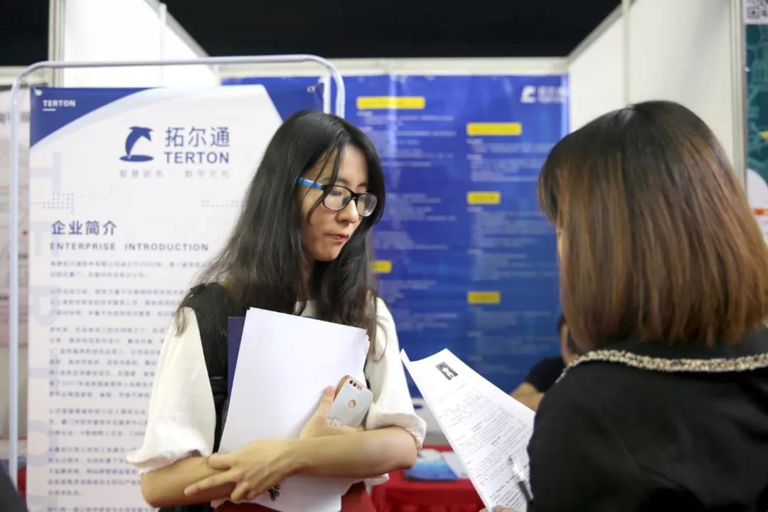 2016级机械专业的蔡福城同学一进入会场便被校友企业的热情所打动,“很多工作人员会主动递上宣传册并了解求职毕业生的情况,这是在其他招聘会上没有感受到的。”他觉得自己作为本科生,在找工作上竞争力稍弱,但在这里看到校友企业招人的诚意,更有信心了一些。
