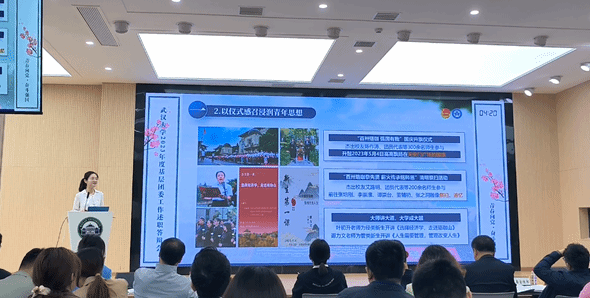 答辩环节中,永利官网团委书记李铭老师以“传百卅薪火,育时代新人”为题目,通过“从影响到引领,在为党育人中领航前行”、“从贴近到凝聚,在服务大局中绽放光彩”、“从亮眼到润心,在青年发展中进取有为”和“从攻坚到磨砺,在深彻锻造中焕发生机”等四个部分,围绕思想引领、基层团建、校庆服务、社会实践、志愿服务、创新创业、学科竞赛、校园文化、国际视野、团学改革等多方面展示了学院团委过去一年取得的工作成绩,获得了现场评委和观众的一致好评。