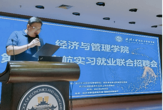 湖北省企业上市发展促进会副秘书长、武汉东湖新技术开发区上市公司协会秘书长涂堩中分析了就业的大环境,他鼓励学生积极展现自己,并祝愿同学们在本次招聘会上取得心意的工作。