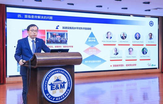副校长龚威对各位校友在母校发展过程中给予的大力支持表示衷心感谢,希望经管学院能够继续深入研究,将咨询委员会的重要建议转化为推动商科教育发展的工作实效,在主动对接国家重大发展战略、对接经济社会发展重大现实问题、对接国际前沿领域中,做好人才培养和学术研究,以高水平商科教育支撑高质量大学建设。