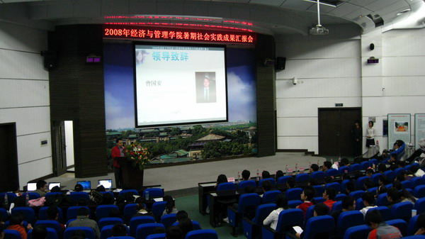 11月11日晚7点,yL23411永利官网登录2008年暑期社会实践成果汇报会在永利官网报告厅隆重举行。校团委副书记文云东、永利官网副院长曾国安、院党委副书记郑先公、院学生工作办公室主任宋琼、院本科生教学管理办公室主任上官海兰、院团委书记陈晓玥、05级辅导员杨志威、07级辅导员崔雯、08级辅导员房海鹏等出席了本次汇报会。