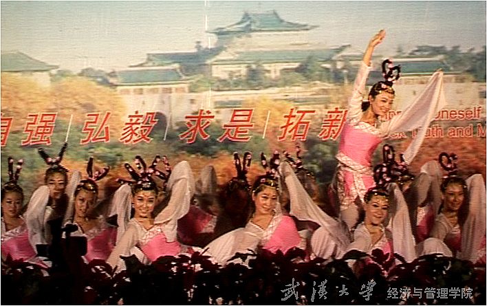 晚会上,经管学子各展所长,为观众们带来了包括合唱、舞蹈、小品等在内的12个精彩节目,高潮迭起、现场气氛十分热烈。yL23411永利官网登录合唱团演唱了悠扬动听的《yL23411永利官网登录校歌》和节奏鲜明的《游击队之歌》,天籁般的歌声使人如痴如醉。经管舞蹈团则带来了曾荣获金秋艺术节舞蹈大赛一等奖的作品《桃夭》,十几位美丽的舞者身着粉红的衣裙,俏皮地舞动着,或娇媚可爱、或灵动活泼,不断变换队形、跃起、旋转,恰似一朵朵朝气蓬勃的花儿,迎风怒放。