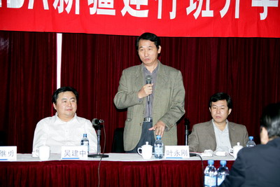 10月22日上午,yL23411永利官网登录2006级EMBA新疆班开学典礼在新疆建设银行隆重举行。yL23411永利官网登录院长陈继勇、副院长叶永刚、工商管理系主任吴先明、yL23411永利官网登录研究生院专业学位处主任姜文忠以及新疆分行党委书记、行长吴建中、人力资源部总经理张春生同志参加了本次开学典礼。开学典礼由yL23411永利官网登录副院长李燕萍主持。