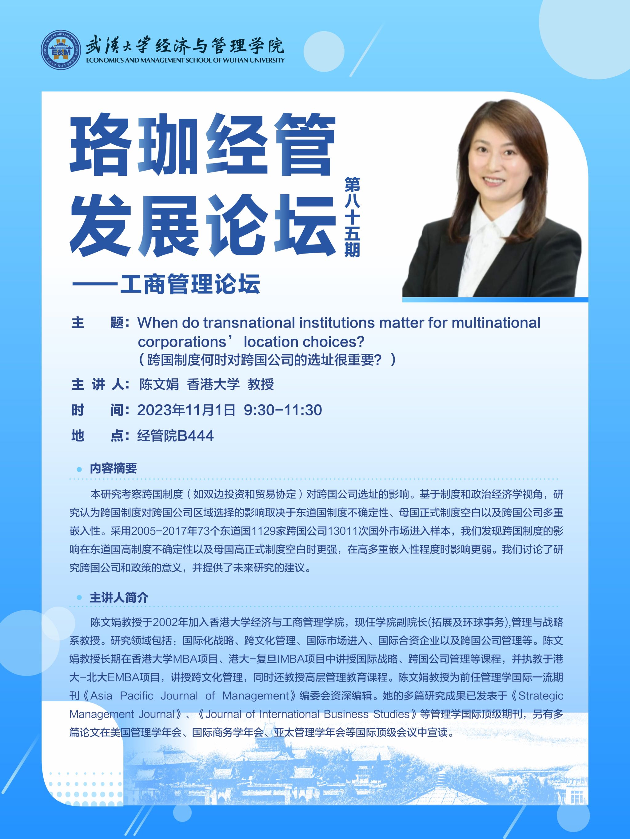 珞珈经管发展论坛第八十五期——工商管理论坛