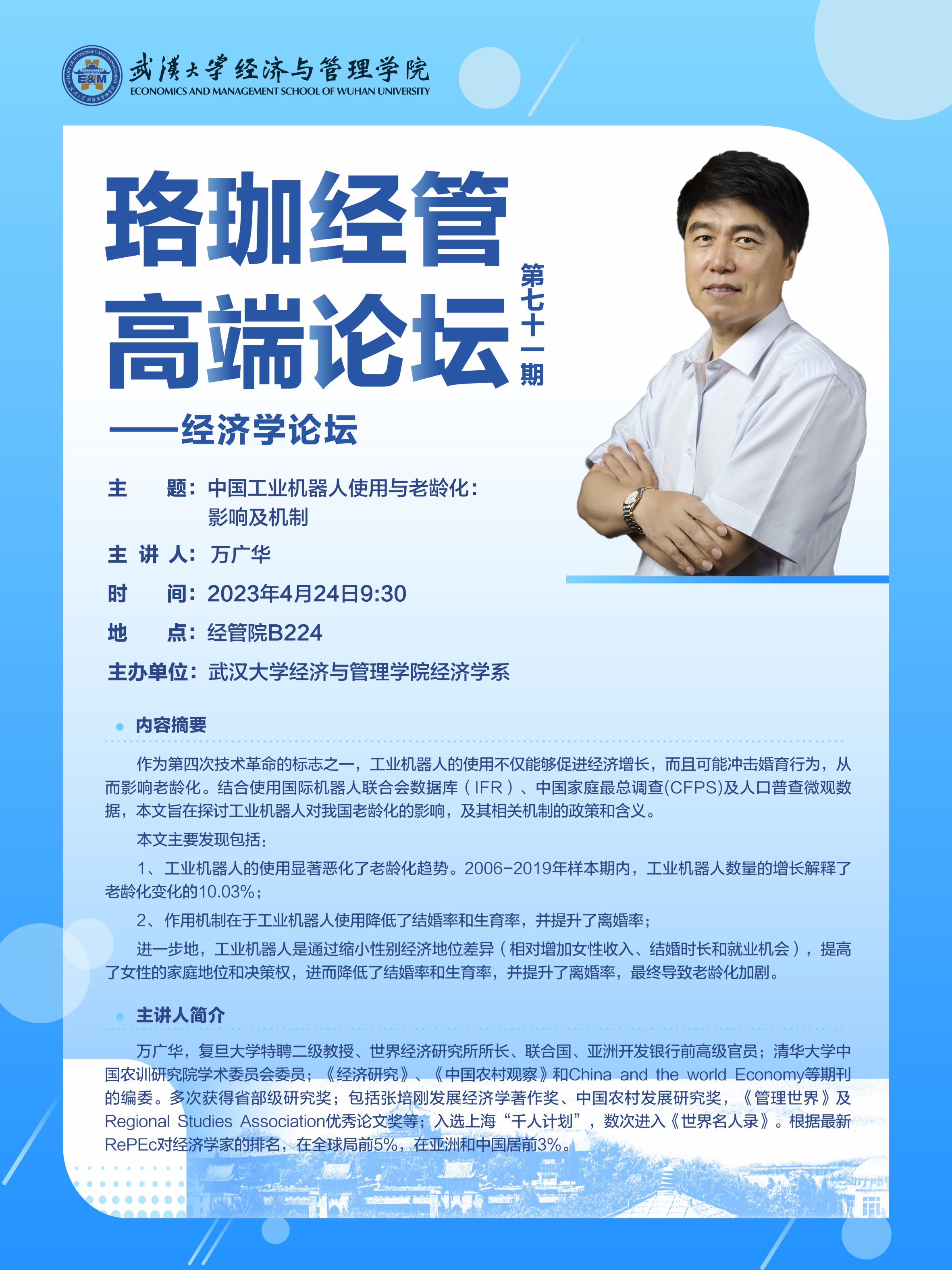 珞珈经管高端论坛第七十一期——经济学论坛