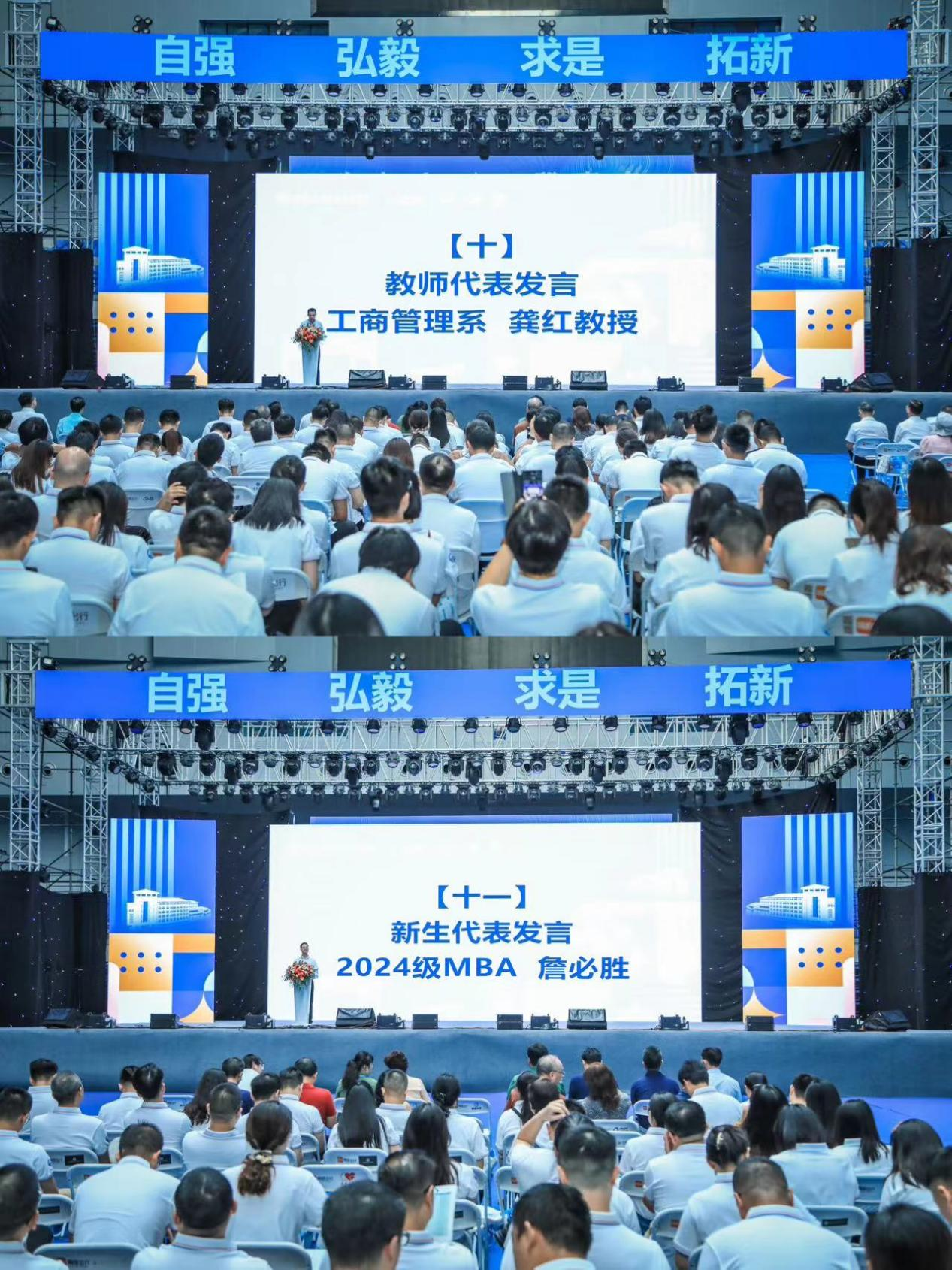 最后,工商管理系龚红教授作为教师代表、2024级MBA学生詹必胜作为新生代表先后发言。